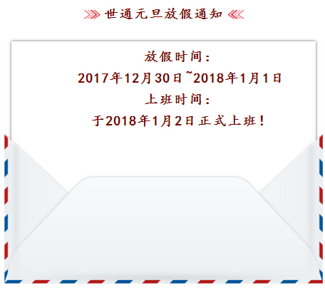 2018年 上海世通檢測“元旦“”放假時間通知!