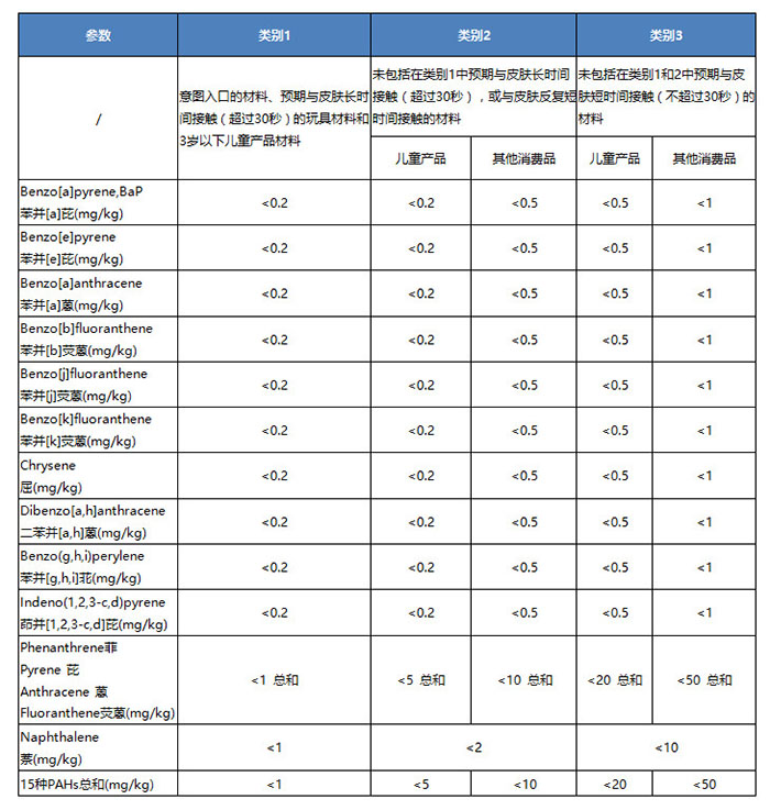 PAHs在工業上基本無生產和使用價值,它們只是生產過程中形成的副產物。消費品中的PAHs主要是污染所致,其污染途徑包括:使用含有PAHs的黑色色粉和軟化油、運輸或存儲中使用的保護劑(如萘)污染等。柔軟和深顏色的聚合體、油漆和涂料一般被認為是含有PAHs的高風險物料。